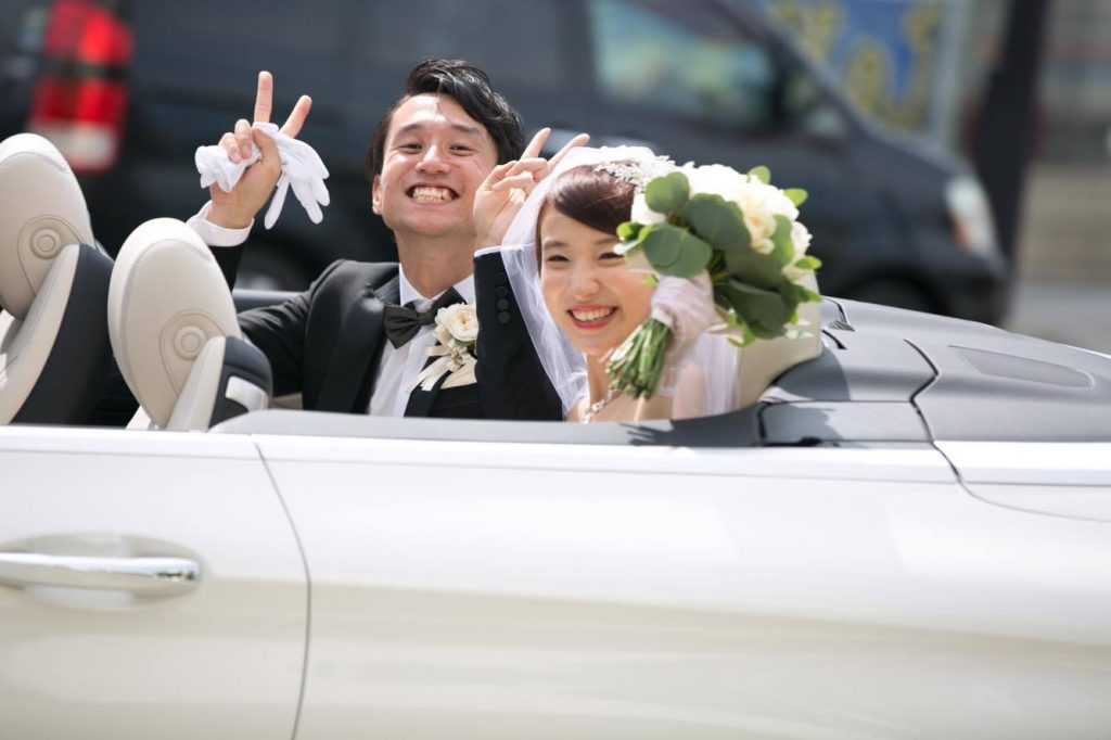 挙式後ゲストの皆様、街中のみなさまより祝福され幸せいっぱいの新郎新婦をパーティー会場までオープンカーの『オワゾカー』で送迎いたします。街中の皆様より祝福して頂き街中が幸せオーラで明るくなり、更にその幸せオーラは『オワゾカー』にのってパーティー会場までの道中も続きます。